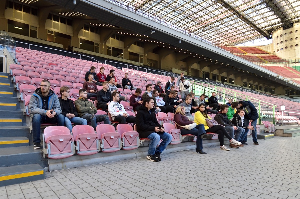 A aby náš výlet nebyl jenom o technice, snažili jsme se udělat radost i sportovním fanouškům. Hned první den zájezdu jsme navštívili fotbalový stadion, kde trénují kluby AC Miláno a Inter Miláno. Skvělým zážitkem byl i výlet na závodní okruh F1 v Monze, kde jsme shodou okolností měli možnost pozorovat přípravu jezdců a to byla rychlost, panečku. Ani jsme nestíhali kroutit krky!