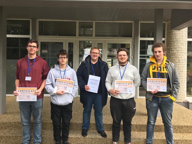 Souběžně s těmito akcemi probíhal i mezinárodní workshop o programování IoT v Trenčíně. Tam každý den jezdili vybraní žáci s panem učitelem Hamříkem. Vyvrcholením akce byla jejich účast na soutěži Trenčinsky robotický deň. Mezinárodně složený tým, do kterého patřil i náš žák 3. AB Honza Rychlík, zvítězil v kategorii Freestyle. Gratulujeme a děkujeme za příkladnou reprezentaci školy!