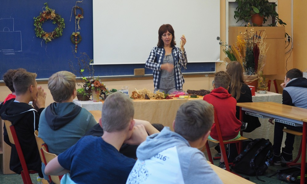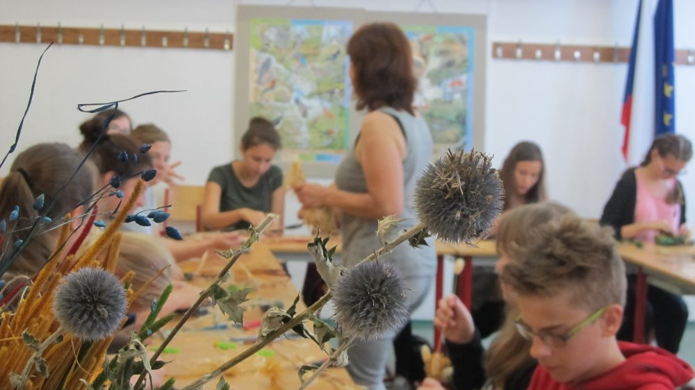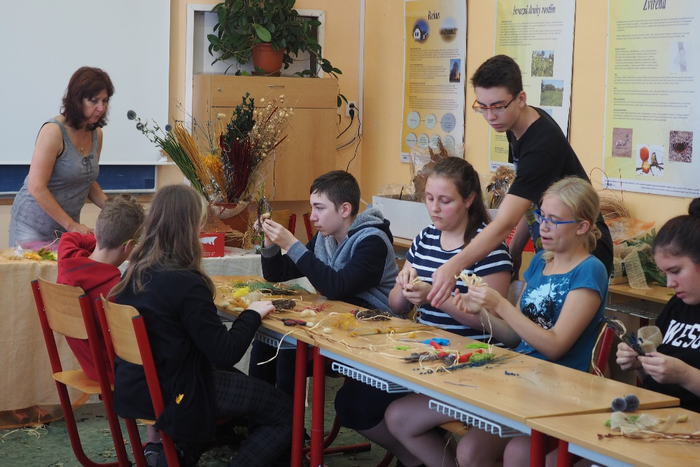 Jelikož je všeobecně známo, že pouhá teorie nikoho příliš nezaujme, všichni nejdříve absolvovali krátké "školení" a ihned poté se vlastnoručně pokusili vytvořit podzimní květinové vazby. Děti se netrpělivě a s nadšením vrhly na připravený materiál a pustily se do práce. Mohly tak zažít nádherný pocit, kdy člověku pod rukama vzniká něco nového, a lze směle prohlásit, že ve většině případů i krásného. V průběhu následujících dvou dnů se žáci ZŠ Větrná seznámili s historií a tradicemi uherskohradišťské čtvrti Mařatice.