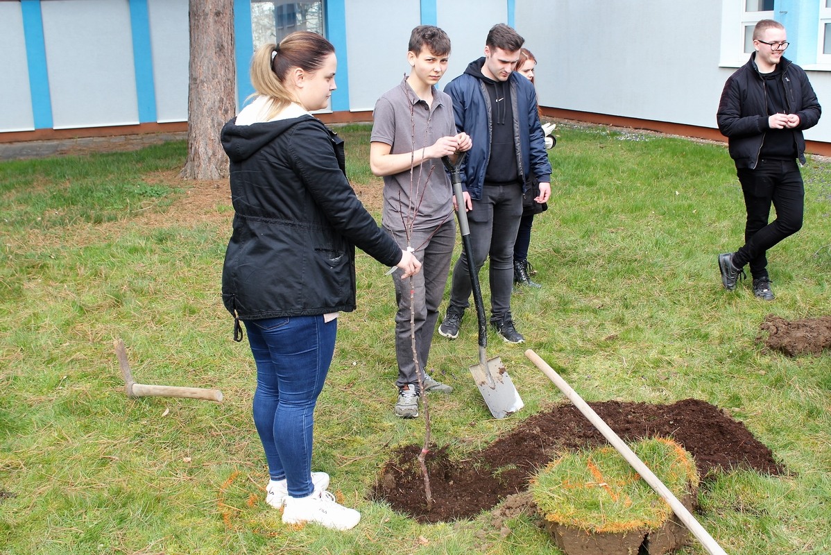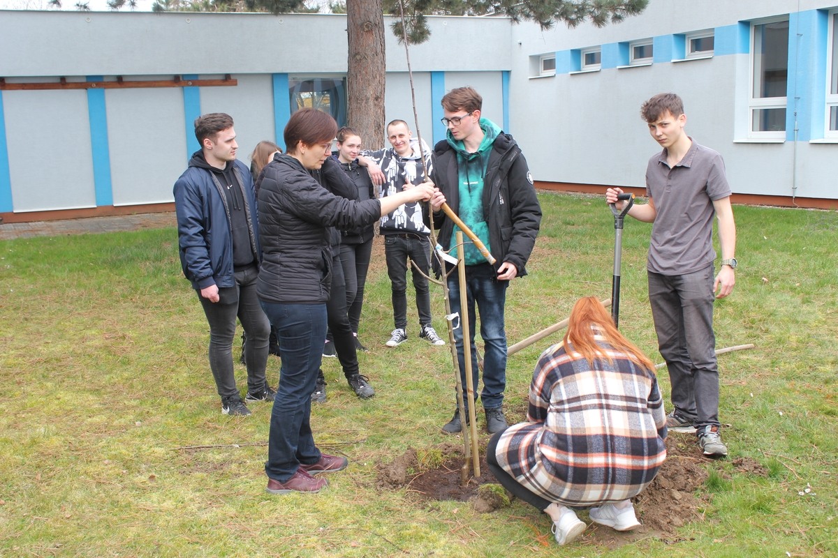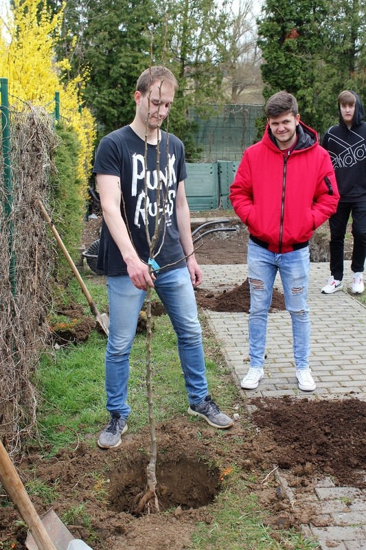 Do výsadby stromků se zapojil i ředitel školy a také naši lektoři z TIC Zlín. Na správný postup při výsadbě dohlížela Ing. Ladislava Nagyová z firmy GARD&N. Tímto ji moc děkujeme za odborný dozor, ale i za poradenství, které samotné výsadbě předcházelo.