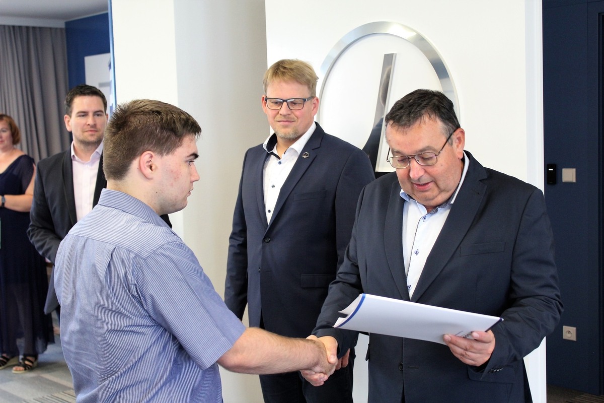 Ve čtvrtek 16. června jsme slavnostně předali vysvědčení a výuční listy úspěšným absolventům MESIT střední školy. Předávání proběhlo v zasedací místnosti MESIT holding, za přítomnosti ředitele školy Mgr. Františka Mikuláška, personálního ředitele Mgr. Jana Šebka Cholewy, MBA, a Ing. Dalibora Kníže, vedoucího MESIT machinery, odštěpného závodu machining. Všem absolventům gratulujeme a přejeme jim mnoho dalších úspěchů v profesním i osobním životě. A s těmi, co se u nás rozhodli pokračovat, se rádi uvidíme zase v září.