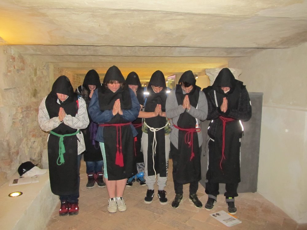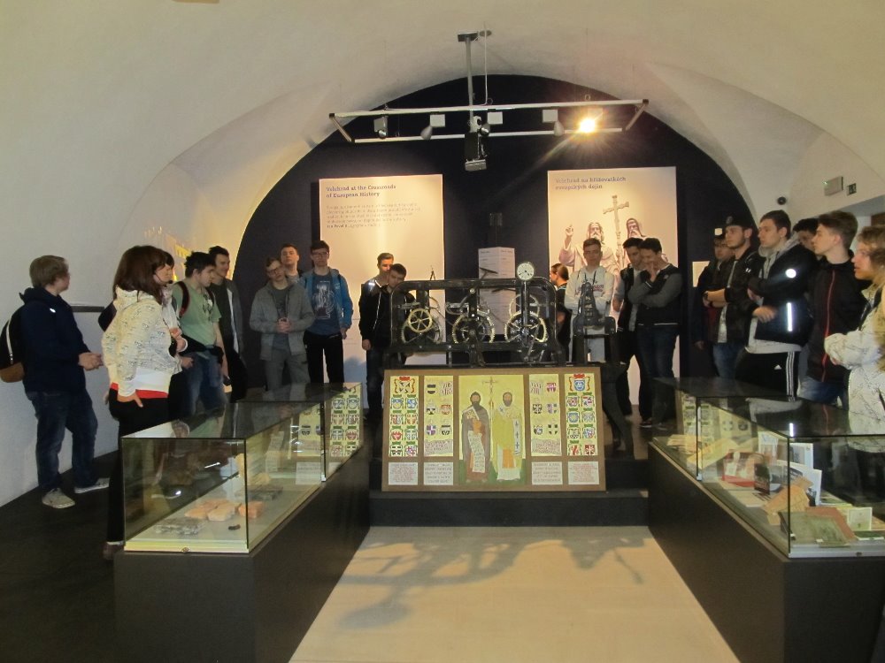 Na Velehradě nás přivítaly dvě příjemné průvodkyně a každý žák nafasoval pracovní listy. Někteří si mohli obléci mnišský oděv. To se klukům líbilo, žádný připravený oděv nezbyl. Po prohlídce kláštera následovala také prohlídka baziliky.