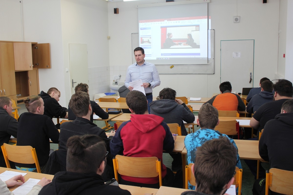 Samotný cvičný pohovor si vyzkoušelo šest našich žáků, kteří se hlásili na různorodé pozice – od provozní kavárny, přes finančního poradce až po profesionálního hasiče. Odvážné „uchazeče o práci“ podpořilo publikum složené ze spolužáků, učitelů a ředitele školy. Nechyběla ani důležitá zpětná vazba od samotných personalistů, ale i od publika.