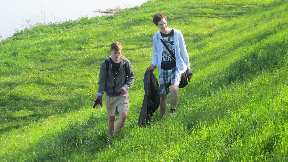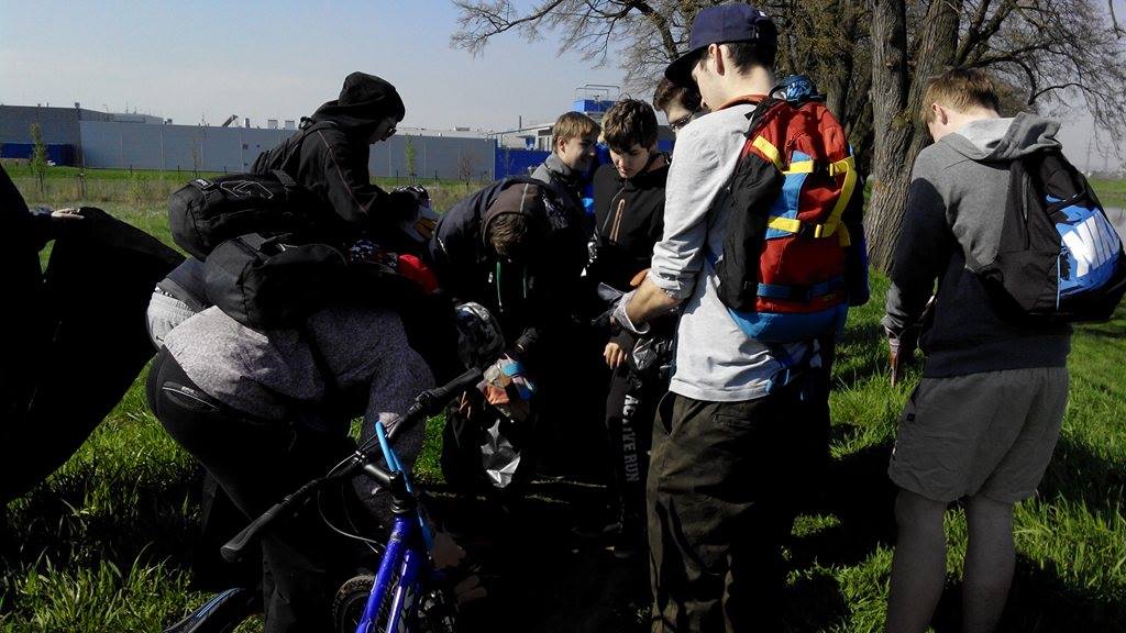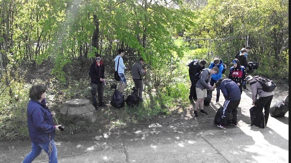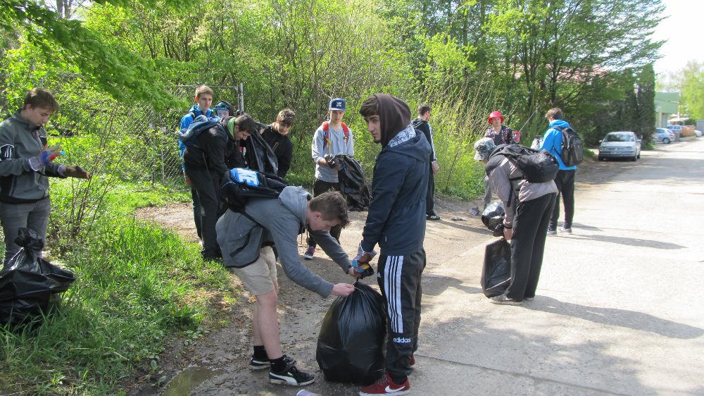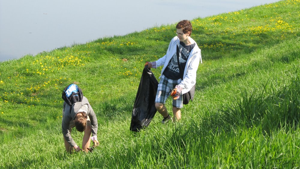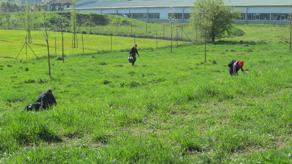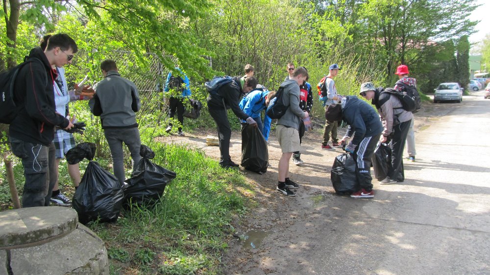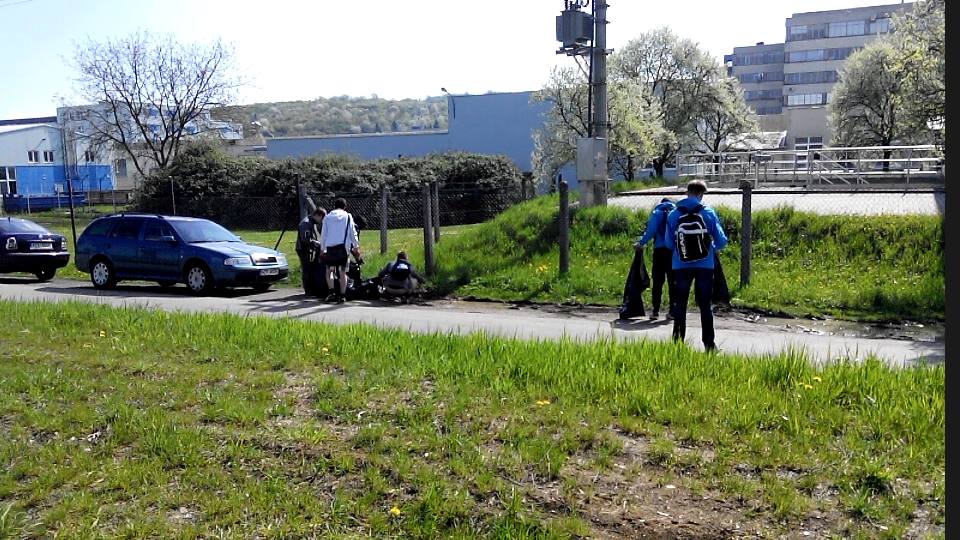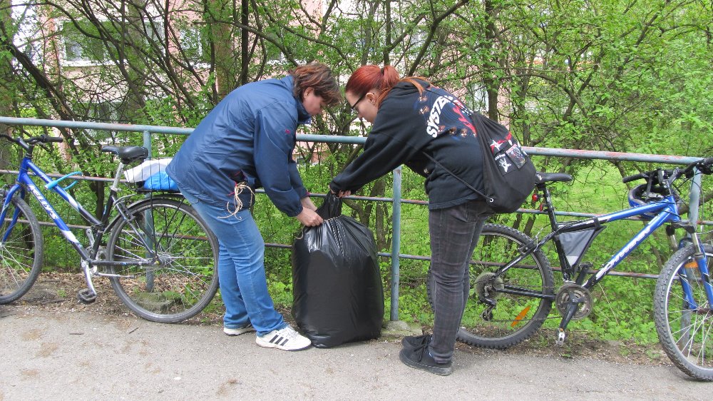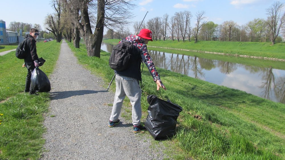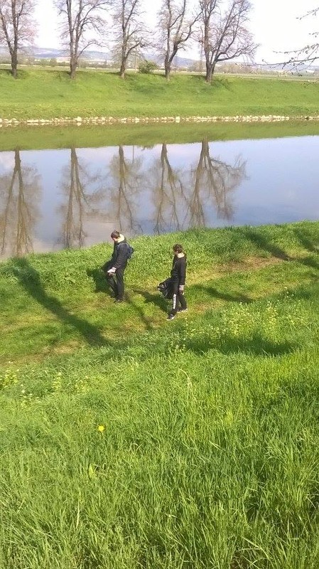 Další skupinka žáků se zastavila na dětském hřišti na Hliníku a trošku tam uklidila nepořádek, také vytrhali trávu v záhonu dřevin.