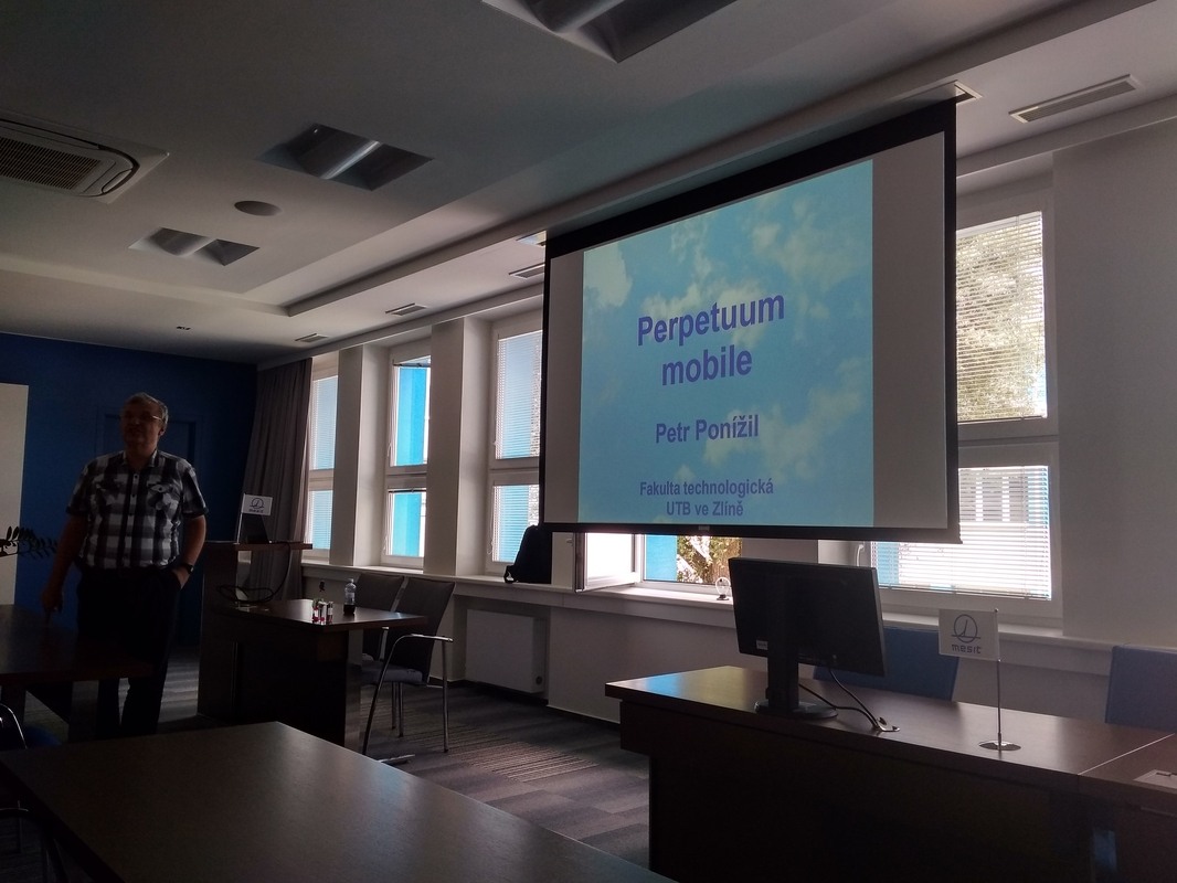 Občas je dobré oživit výuku něčím netradičním. Z tohoto důvodu naše škola využila nabídky www.vedanaprani.cz Univerzity Tomáše Bati ve Zlíně a tak se žáci vybraných ročníků naší MESIT střední škola zúčastnili přednášky na téma Perpetuum mobile. Tuto přednášku nám přijel odprezentovat pan doc. RNDr. Petr Ponížil, Ph.D. Přednáška byla úžasná! Dozvěděli jsme se o hledání tohoto "svatého grálu mechaniky" od historie až po současnost. Jaké fyzikální zákony jsou za tím skryty a že se kolem toho točí nejedna konspirační teorie. Také nám ukázal několik videí z internetu na kterých jsou "fungující" perpetua. A doporučil, abychom kriticky přemýšleli o všem, co vidíme. Někteří kluci vypadali, že je to moc nebaví, ale to bylo způsobeno především tím, že byli unaveni z tělocviku. Někteří se přednáškou, ale bavili a projevovali i něco jako kritické myšlení. Dva nejlepší dokonce dostali nabídku, že kdyby u něj měli dělat zkoušku z fyziky, tak se mají připomenout a dostanou to protekčně, tak uvidíme, jestli ji někdy využijí.