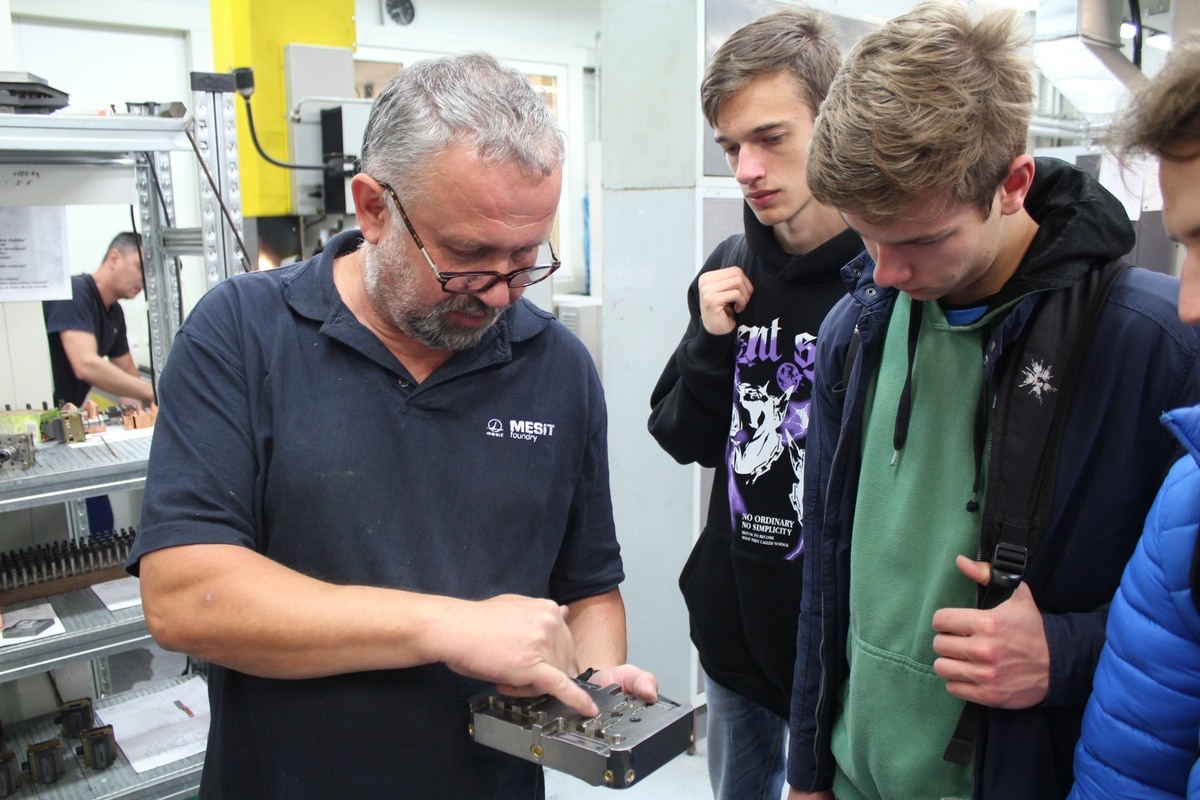 V říjnu jsme zašli na odbornou exkurzi do MESIT foundry. Naši maturanti tak mohli na vlastní oči vidět různé nekonvenční technologie, jako jsou elektroinvazivní obrábění nebo řezání drátem, a tyto znalosti dále upotřebí například při šprtání na maturitu. A aby byl jejich odborný výcvik ještě efektivnější, pořídili jsme klukům na dílny super novou frézku i s postprocesorem, který zajistí tvorbu CNC programu.