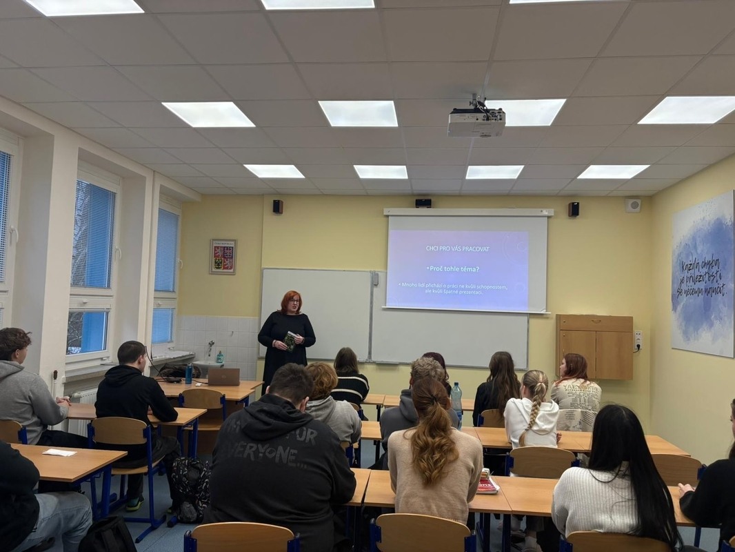 Velmi přínosnou návštěvou byla návštěva vedoucí personalistky MESIT holding, paní Hany Bartoškové, která zahájila workshop s názvem Chci pro vás pracovat. Ten je určen žákům a žákyním končících ročníků a pomáhá jim zorientovat se ve světě pracovních příležitostí. Žáci se dozvěděli, jak správně napsat životopis, jak se připravit na pracovní pohovor a další užitečné tipy spojené s hledáním práce. Propojení školy s praxí je pro nás klíčové a podobná setkání dávají studiu další rozměr.