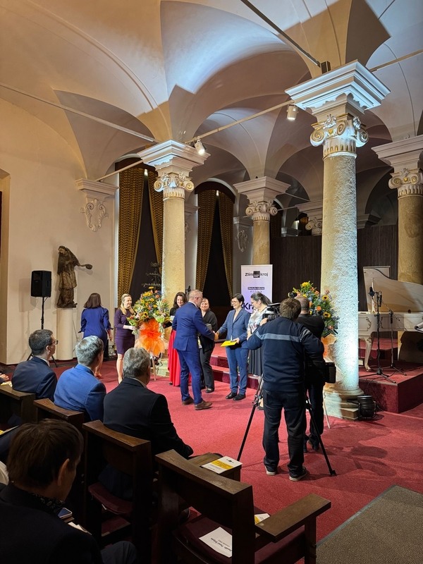 O týden později se konalo v Uherském Hradišti předávání Ocenění pedagogických pracovníků škol, školských zařízení a ocenění dobrovolných pracovníků s dětmi a mládeží. Toto ocenění si na pódiu v Redutě převzali dva naši výjimeční pedagogové– David Maceček a David Kozubík.