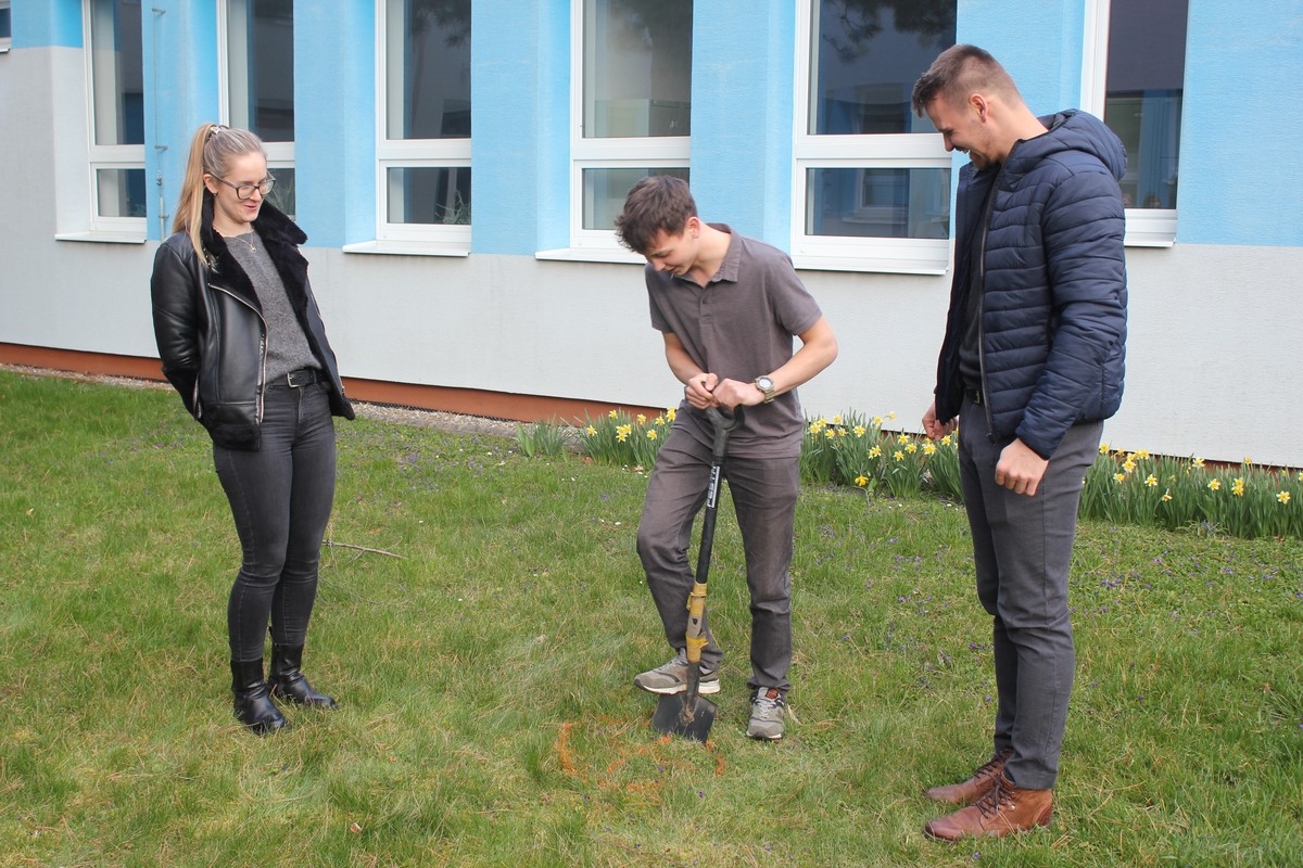 Do výsadby stromků se zapojil i ředitel školy a také naši lektoři z TIC Zlín. Na správný postup při výsadbě dohlížela Ing. Ladislava Nagyová z firmy GARD&N. Tímto ji moc děkujeme za odborný dozor, ale i za poradenství, které samotné výsadbě předcházelo.