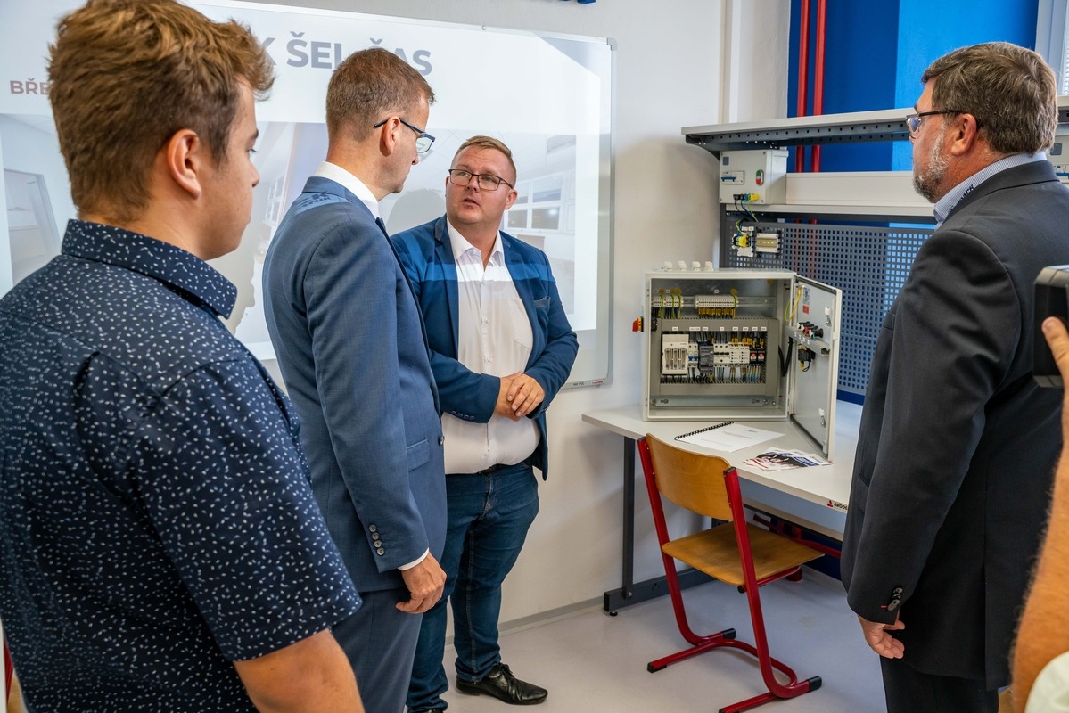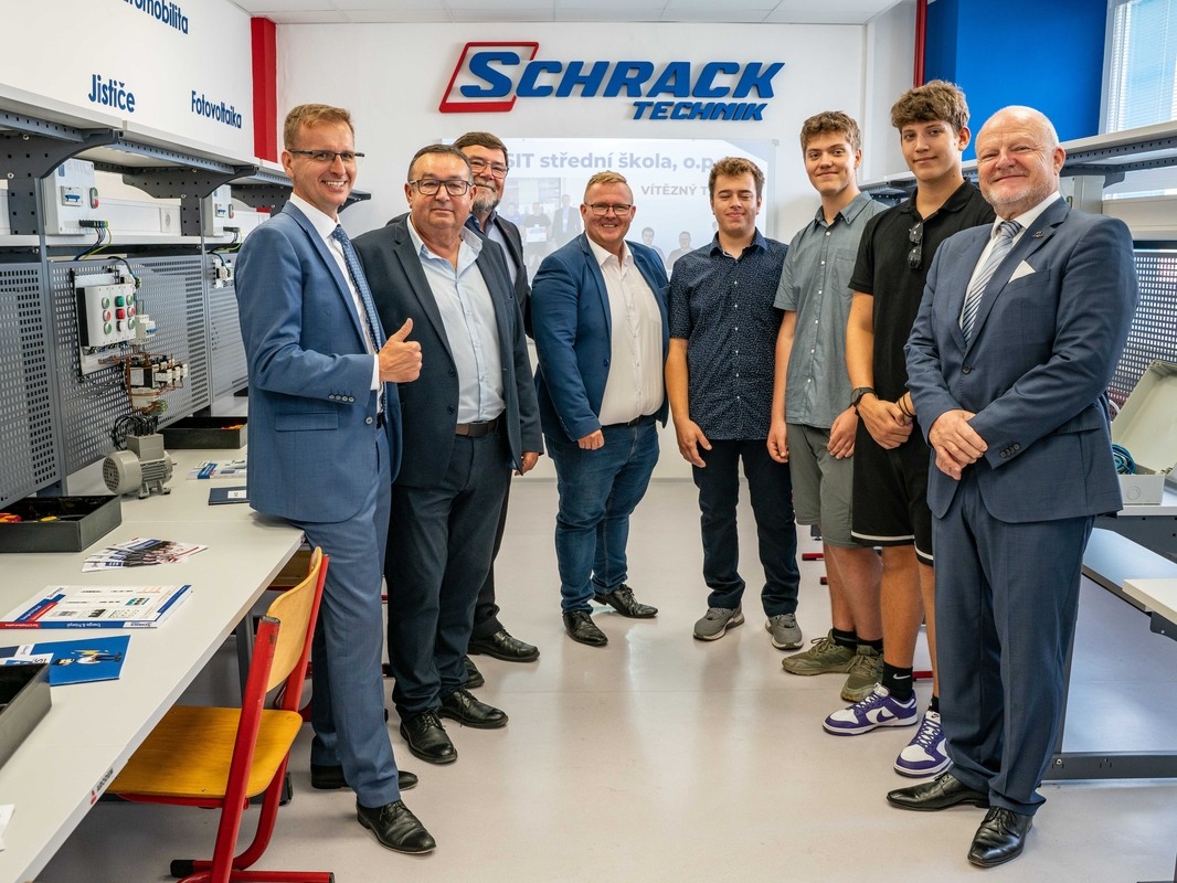 V pondělí 2. září jsme v naší škole slavnostně otevřeli zcela novou odbornou učebnu Schrack Technik, která patří k nejmodernějším v České republice. Tato špičkově vybavená učebna je určená pro výuku v oblasti elektroenergetiky a silnoproudu. Učebnu získali žáci pod vedením učitele Ladislava Hamříka díky celostátnímu projektu Schrack for Students, kde oslnili odbornou porotu svým návrhem na rozváděč pro ekologické využití dešťové vody. Hotový rozváděč si mohli hosté prohlédnout právě při slavnostním otevření nové učebny.