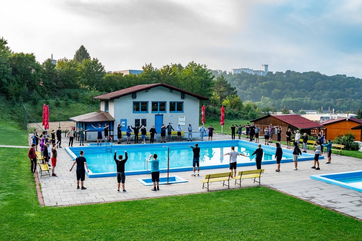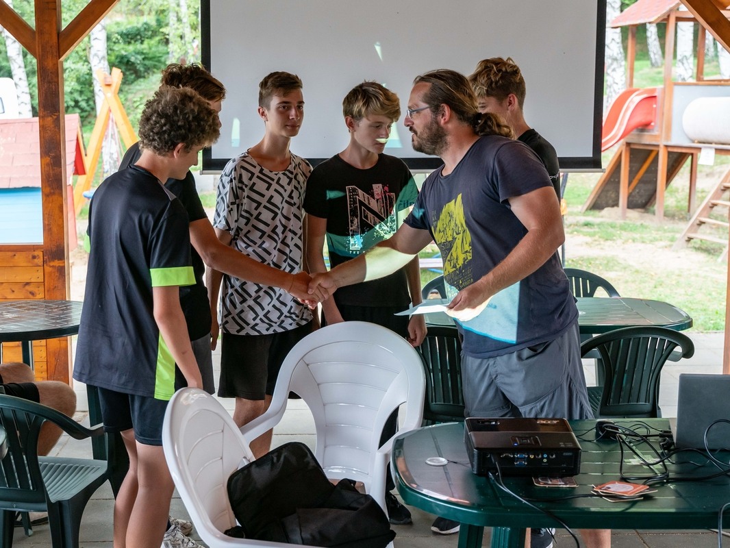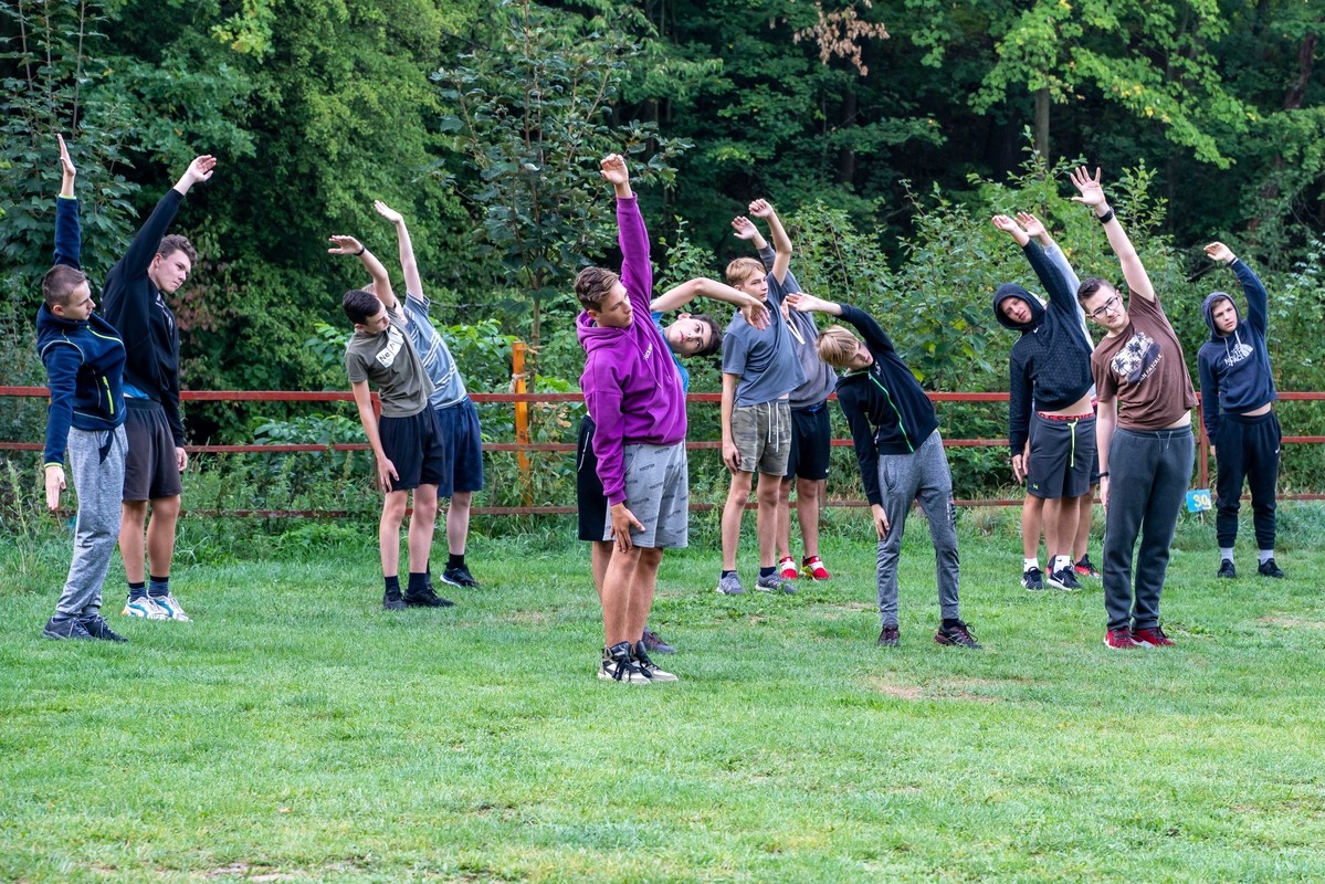 Druhý den po ranní rozcvičce následovala „bojovka“, při které žáci v týmech museli zdolat desetikilometrovou trasu, na které učitelé připravili celkem 5 stanovišť, na nichž si týmy prověřily nejenom fyzickou zdatnost, ale i vědomosti nebo schopnost orientace v terénu. Počasí nám přálo – svítilo sluníčko a pršet začalo až poté, co dorazil do cíle poslední tým. Ale ani déšť pro nás neznamenal nudu. Po zbytek dne se žáci zapojili do zábavného filmového kvízu o ceny a večer si poslechli přednášku o úvodu do průmyslu 4.0, aby si následně mohli vyzkoušet virtuální realitu nebo elektronické stavebnice.