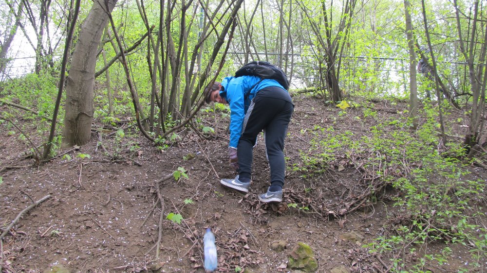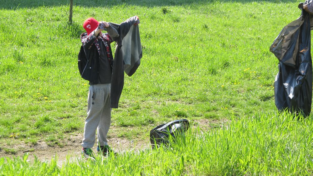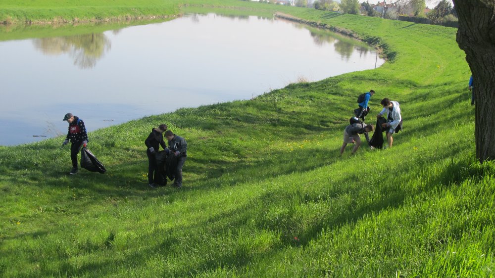 Další skupinka žáků se zastavila na dětském hřišti na Hliníku a trošku tam uklidila nepořádek, také vytrhali trávu v záhonu dřevin.