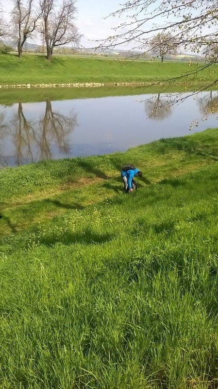Prošli jsme se po břehu Moravy v Jarošově a v Mařaticích a také kolem schodů, které vedou k řadovkám na mařatických kopcích. U Moravy se klučíci rozdělili o svačiny s kačenkami. Byly opravdu hladové a šly za námi jako psíci.