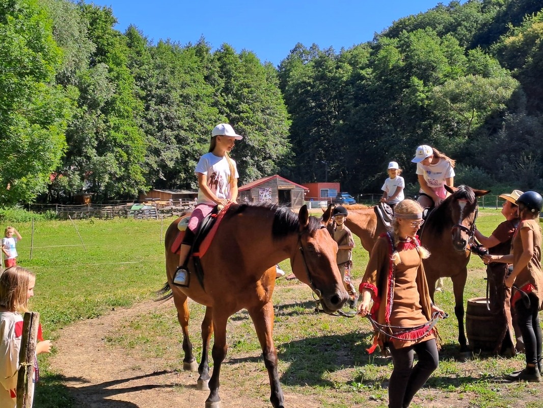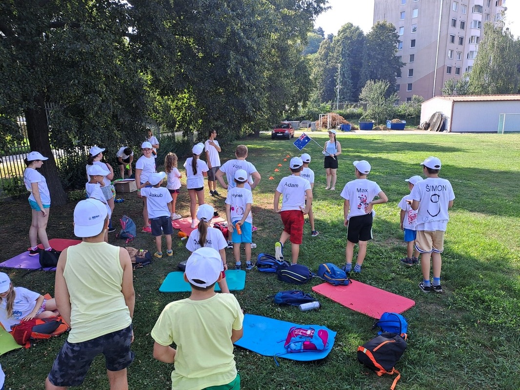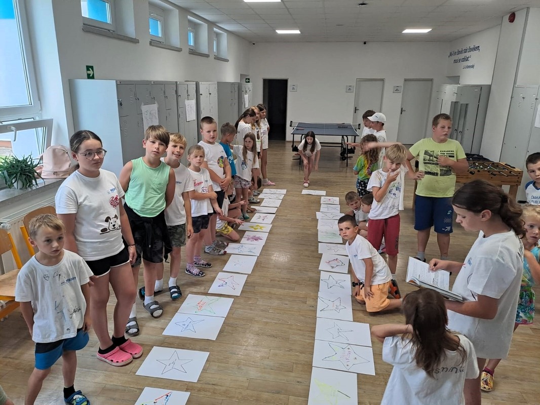 Na přelomu července a srpna proběhlo u nás ve škole Indiánské léto aneb druhý turnus příměstského tábora. I tento tábor spojovala jednotná příběhová linka, kterou táborníci v průběhu týdne řešili. Někdo jim totiž ukradl totem, a aby ho získali zpět, museli každý den splnit nějakou zkoušku. Díky tomu jsme prověřili u malých indiánů jejich chytrost, vytrvalost, odvahu, statečnost, hbitost, všímavost, orientaci a další nezbytné vlastnosti a dovednosti. Vyzkoušeli jsme si střelbu lukem, jízdu na koni, výrobu čelenek i zpěv u ohně. Bylo to prostě skvělé a i tentokrát se nám podařilo splnit všechny výzvy a získali jsme zpět náš indiánský totem! Zpestřením druhého turnusu byla i možnost jedné noci strávené ze čtvrtka na pátek v naší škole. Přespávačka měla obrovský úspěch a děti bez problému zvládly i stezku odvahy. Na páteční závěrečné oslavě pak každý táborník obdržel diplom a pravý náramek přátelství.