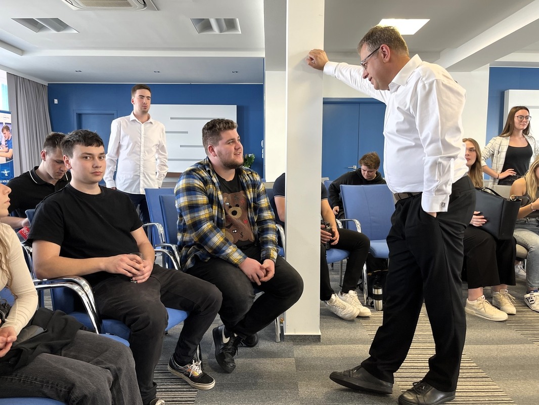 Setkání proběhlo v konferenční místnosti MESIT holding formou diskuze mezi panem Moravcem a žáky obou tříd oboru Podnikání. Ti měli unikátní šanci se pana Moravce ptát na vše, co je k tématu AI zajímalo. Během rozhovorů se témata stočila i na současnou politiku a osobní zážitky našeho hosta z natáčení diskuzních pořadů či ze setkání se známými osobnostmi. Náš vzácný host si s námi ochotně povídal zhruba dvě hodiny, a následně přijal od pana ředitele pozvání na oběd, kde mu byly předány upomínkové předměty na město Uherské Hradiště. Během oběda kladně hodnotil aktivní přístup žáků k diskuzi a ocenil způsob, jakým u nás s žáky pracujeme. Vzhledem k tomu, že sám působí i jako pedagog na vysoké škole, je zřejmé, že tyto jemné nuance ve vzdělávání dokáže rozpoznat a ocenit.