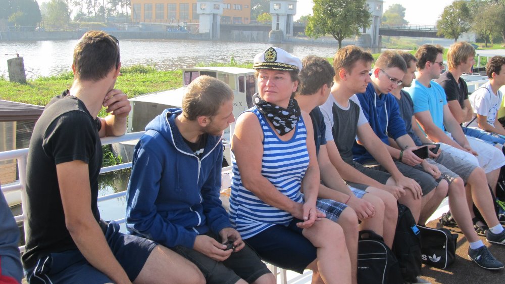"Naštěstí jsem na tu kupu "dětí" nebyla sama,... Výuka začala projížďkou na lodi "Morava" po známém Baťově kanálu, kde nám paní průvodkyně poskytla zajímavý výklad o jeho budování a využití. Poté jsme navštívili malou vodní elektrárnu v obci Spytihněv a dozvěděli se, že byla uvedena do provozu v roce 1951 a slouží občanům dodnes. Nechybělo ani krátké posezení v restauraci "Na Rejdě", kde si žáci dali něco dobrého k jídlu a pití. Po této malé přestávce jsme vyrazili podél Baťova kanálu ke slepým ramenům řeky Moravy. Prohlédli jsme si vodní plochu "Uhliska" v nedalekých Babicích, která je velmi oblíbeným místem ke sportu i rekreaci. Následně jsme se vydali na další cestu kolem "Blat", "Výrovky" a "Koňova" k řece Moravě, téměř až k vesnici, známé výrobou místního piva, Jarošovu. Žáci se cestou dozvěděli nejen nové informace o lokalitách, jimiž procházeli, ale seznámili se i s množstvím nových pojmů jako meliorace, zavodňování, regulace vodního toku, meandry, ... Posledním zážitkem byl pochod podél řeky Moravy, za níž jsme dokonce viděli jarošovský pivovar a na kopci známou rozhlednu Rovninu. Poté nás už čekala jen cesta přes pole až do Uh. Hradiště...