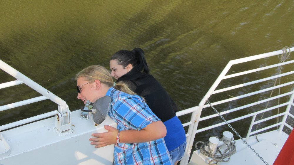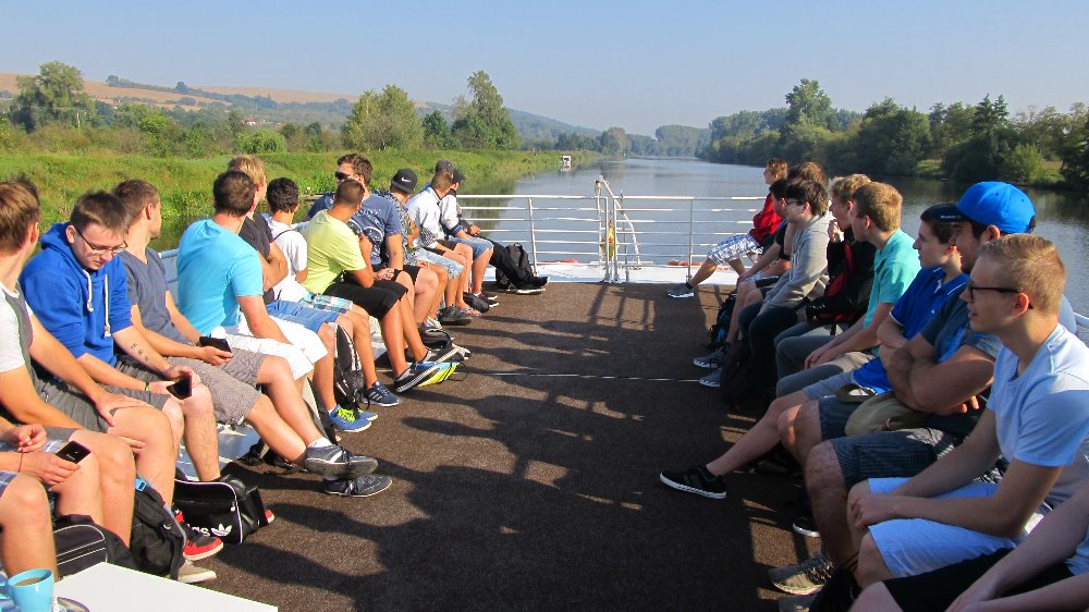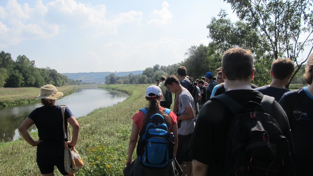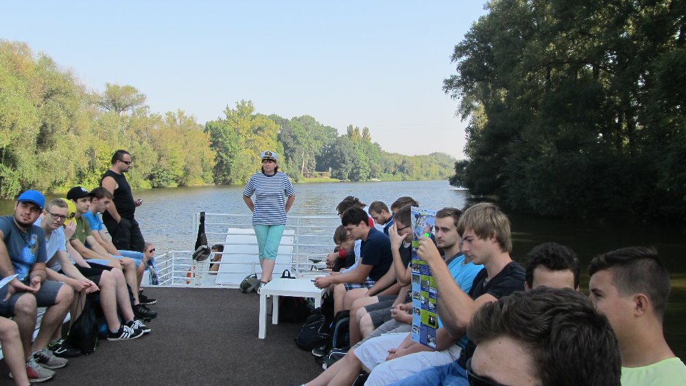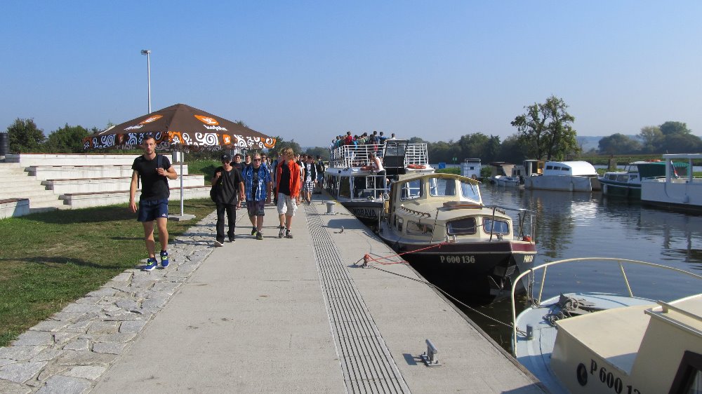 "Naštěstí jsem na tu kupu "dětí" nebyla sama,... Výuka začala projížďkou na lodi "Morava" po známém Baťově kanálu, kde nám paní průvodkyně poskytla zajímavý výklad o jeho budování a využití. Poté jsme navštívili malou vodní elektrárnu v obci Spytihněv a dozvěděli se, že byla uvedena do provozu v roce 1951 a slouží občanům dodnes. Nechybělo ani krátké posezení v restauraci "Na Rejdě", kde si žáci dali něco dobrého k jídlu a pití. Po této malé přestávce jsme vyrazili podél Baťova kanálu ke slepým ramenům řeky Moravy. Prohlédli jsme si vodní plochu "Uhliska" v nedalekých Babicích, která je velmi oblíbeným místem ke sportu i rekreaci. Následně jsme se vydali na další cestu kolem "Blat", "Výrovky" a "Koňova" k řece Moravě, téměř až k vesnici, známé výrobou místního piva, Jarošovu. Žáci se cestou dozvěděli nejen nové informace o lokalitách, jimiž procházeli, ale seznámili se i s množstvím nových pojmů jako meliorace, zavodňování, regulace vodního toku, meandry, ... Posledním zážitkem byl pochod podél řeky Moravy, za níž jsme dokonce viděli jarošovský pivovar a na kopci známou rozhlednu Rovninu. Poté nás už čekala jen cesta přes pole až do Uh. Hradiště...