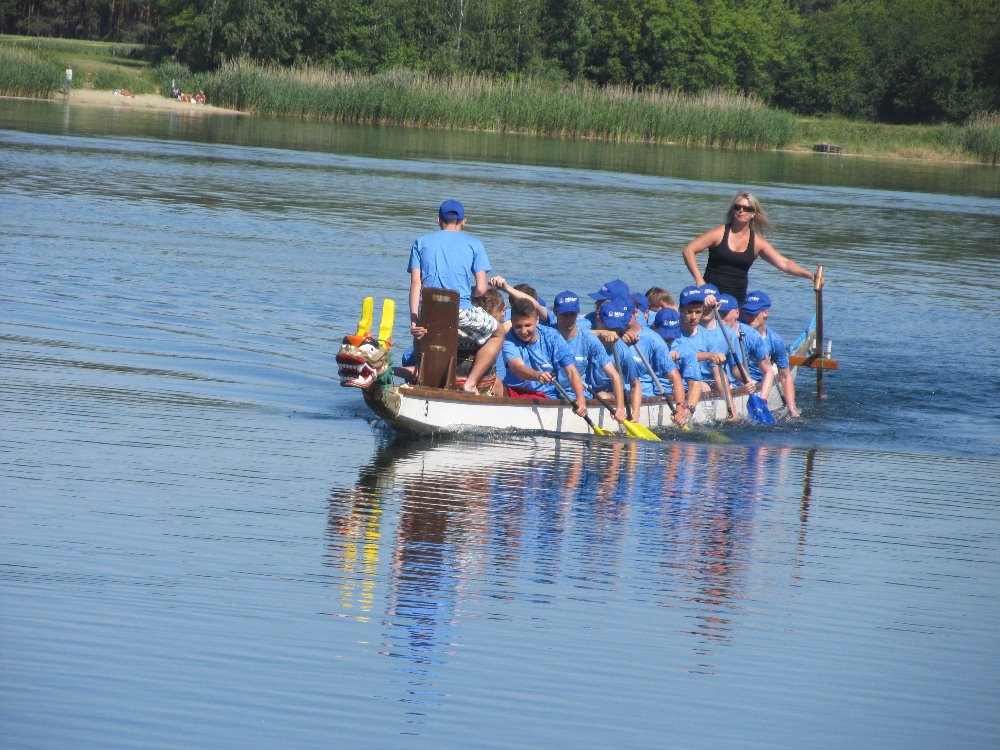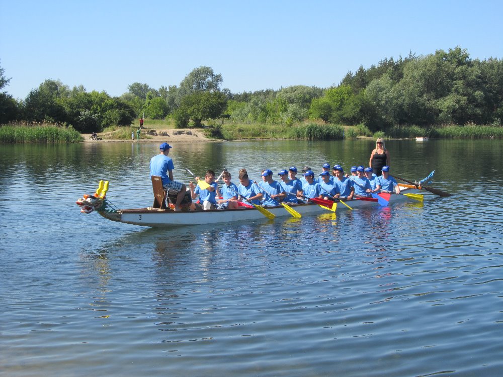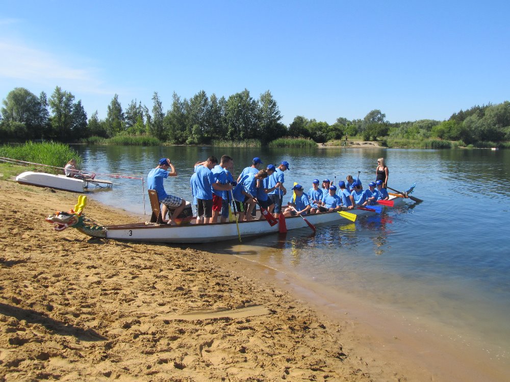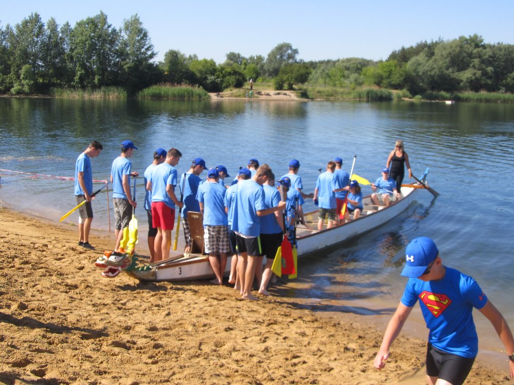 Dnešní páteční den se pro hochy z prvního a druhého ročníku oboru mechanik CNC nesl ve znamení slunce, vody a sportu. Rozhodli se totiž za doprovodu svých vyučujících, p. uč. Hubáčkové, Pořízkové a Horčičkové, reprezentovat naši školu a přijali výzvu zúčastnit se závodu dračích lodí „Grand Prix pro juniorské školní posádky na 200m“, uspořádaného oddílem kanoistiky v areálu Kunovská tabule. V centru dění, kterým byla tradičně veslařská loděnice v Ostrožské Nové Vsi, se ve svých kategoriích utkaly týmy základních a středních škol. V kategorii středních škol se na vodě objevily tři posádky (dvě z gymnázia Uh. Hradiště, jedna z naší školy).