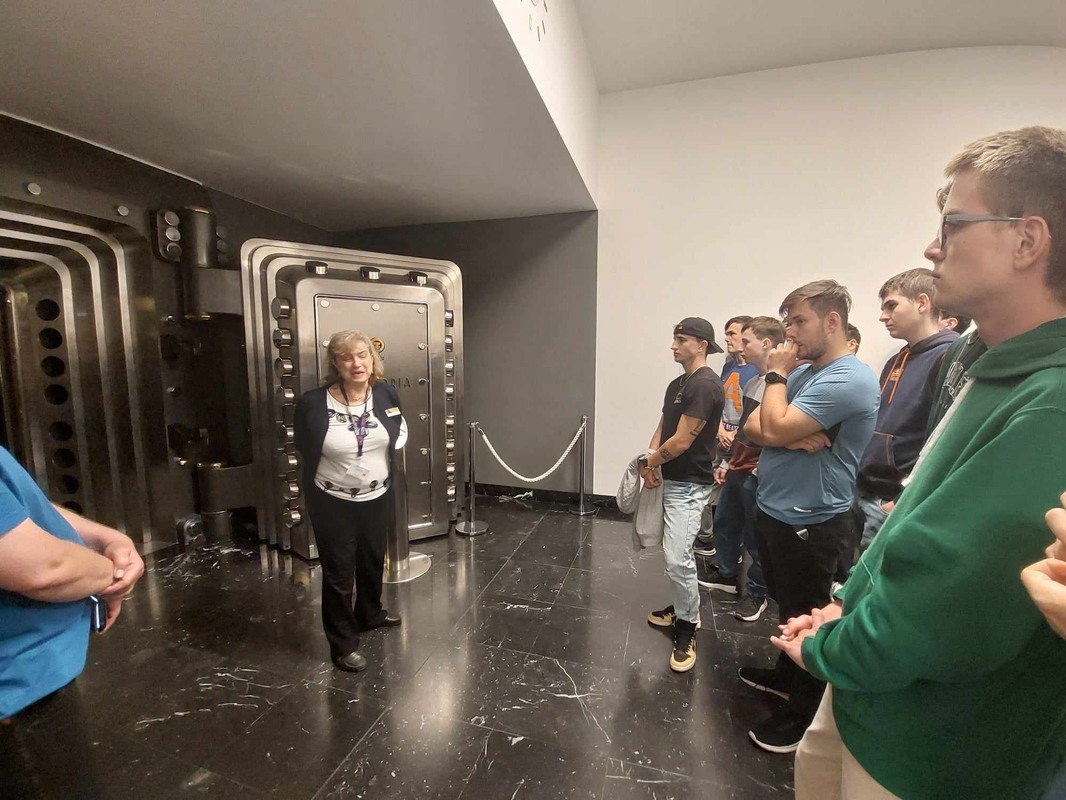 Jedním z nejzajímavějších zážitků byla návštěva trezoru České národní banky. Expozice "Lidé a peníze" představila historii a vznik peněz, stará platidla i padělky. Největším lákadlem byla 136 kg zlatá mince v hodnotě 100 milionů korun. Zajímavostí byla také informace o čidlu pod sedmitunovými bezpečnostními dveřmi trezoru, které instaloval náš kolega učitel.