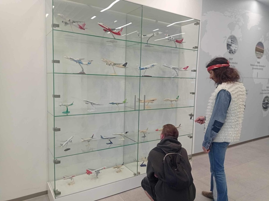 První zastávkou bylo Letiště Václava Havla. Po důkladné bezpečnostní kontrole následovala dvouhodinová prohlídka, během níž nás bývalý pilot provedl historií letiště a provozem na všech třech terminálech. Žáci viděli vzlety a přistání letadel, nakládku a vykládku zavazadel, doplňování paliva a navštívili hangár, kde se seznámili s údržbou letadel.