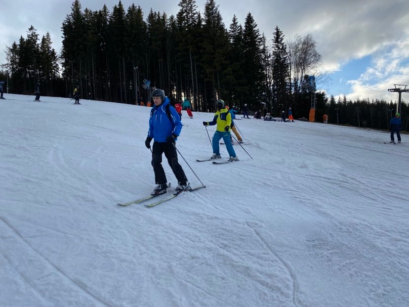 Pro lyžování sice nebyly zrovna ideální podmínky – přeci jen je ten letošní leden nadprůměrně teplý – ale měli jsme štěstí, že sjezdovky byly v provozu alespoň s umělým sněhem. Pro ubytování jsme zvolili útulnou Chatu pod Kamzíkem, kterou jsme měli sami pro sebe, a v jejíž blízkosti se nacházel i bazén, whirlpool, tělocvična, bowling a další zařízení, která jsme po večerech využívali. Pánové si užili spoustu zábavy, ale také se dozvěděli nové věci z Průmyslu 4.0 trochu jinou formou, než jsou ve škole zvyklí.